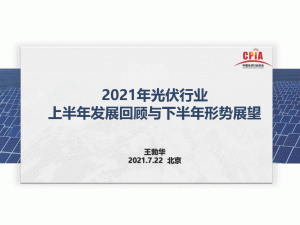 2021年7月22日,“光伏行業(yè)2021年上半年發(fā)展回顧與下半年形勢(shì)展望研討會(huì)”在北京天泰賓館舉行。會(huì)上,中國(guó)光伏行業(yè)協(xié)會(huì)名譽(yù)理事長(zhǎng)王勃華對(duì)2021年上半年我國(guó)光伏產(chǎn)業(yè)發(fā)展情況做了回顧并對(duì)下半年發(fā)展形勢(shì)做出展望。