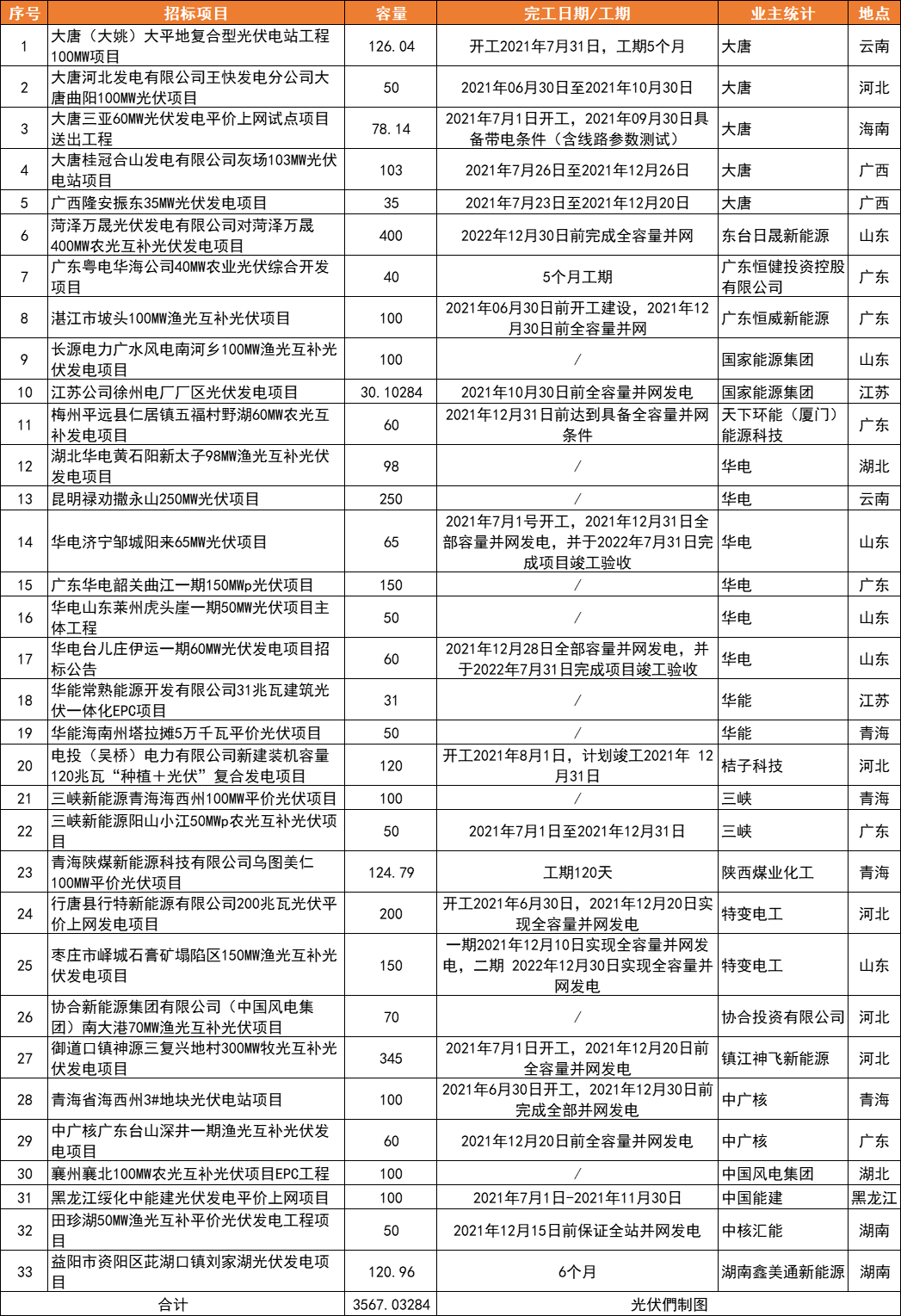 截止7月上旬,國內(nèi)已經(jīng)有超過8GW的光伏電站項目啟動EPC招標。繼5月上旬光伏們統(tǒng)計的5GW光伏EPC項目招標(詳情可點擊《大唐、三峽、中能建等5GW光伏電站EPC招標啟動,下半年成年度裝機關鍵時期》查看)后,5-7月華電、大唐等陸續(xù)公布了超過3.5GW的光伏電站EPC招標。備注:上圖為根據(jù)公開信息統(tǒng)計的近期EPC招標項目,僅供