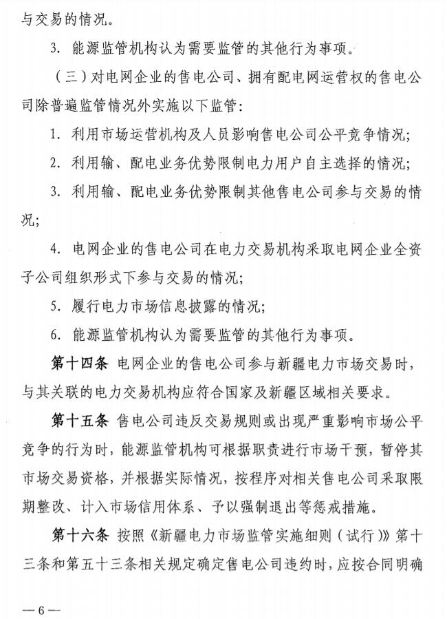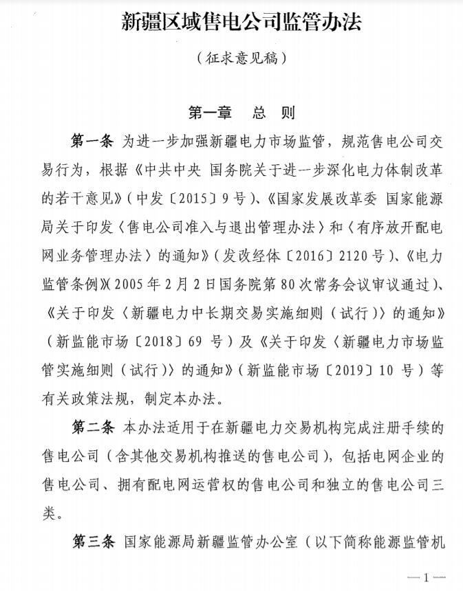新疆監(jiān)管辦消息:為進一步加強售電公司監(jiān)管,維護市場主體合法權(quán)益,促進電力市場健康、有序發(fā)展,新疆監(jiān)管辦結(jié)合新疆電力市場實際情況,對《新疆區(qū)域售電公司監(jiān)管辦法(試行)》進行了修訂,形成了《新疆區(qū)域售電公司監(jiān)管辦法(征求意見稿)》,現(xiàn)印發(fā)公開征求意見,請結(jié)合實際提出意見和建議,并于2021年8月30日前反饋我