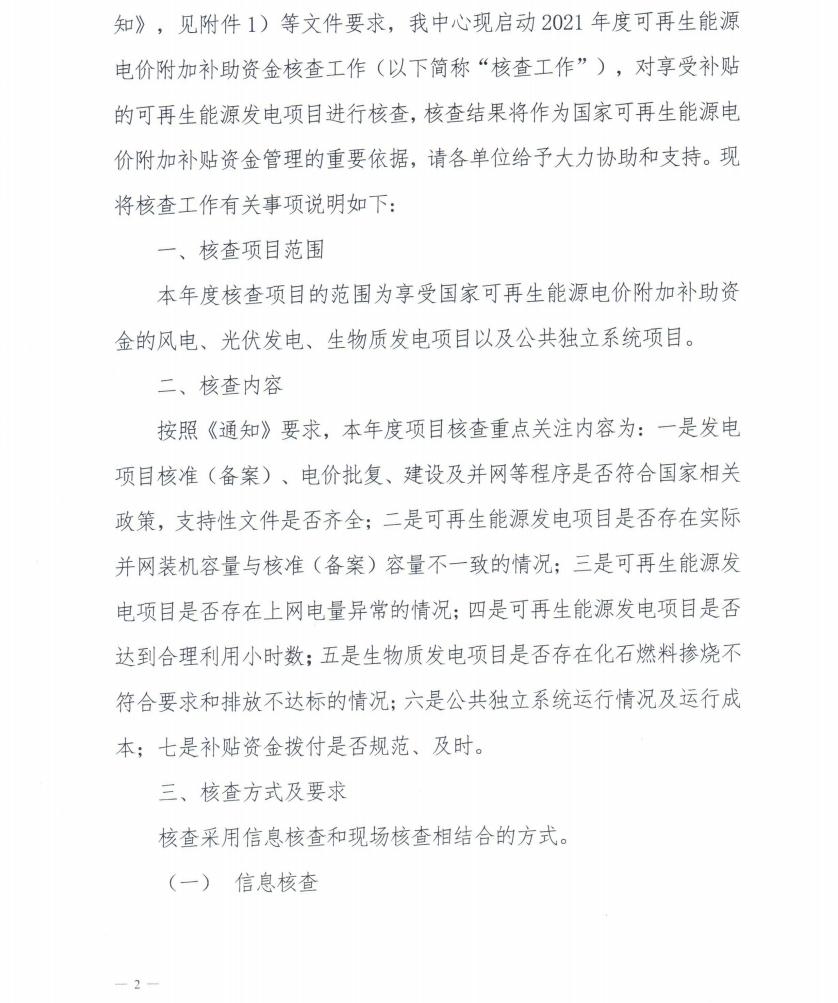 核查范圍包括:獲得補(bǔ)貼資金的國(guó)家電網(wǎng)、南方電網(wǎng)、各省區(qū)地方獨(dú)立電網(wǎng)企業(yè),以及在上述電網(wǎng)企業(yè)經(jīng)營(yíng)范圍內(nèi)的獲得補(bǔ)貼資金的風(fēng)電、光伏發(fā)電、生物質(zhì)發(fā)電項(xiàng)目、公共獨(dú)立系統(tǒng)項(xiàng)目。