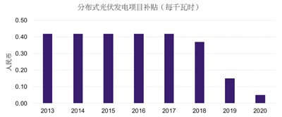 而隨著補(bǔ)貼的逐步取消,行業(yè)的持續(xù)增長以及利潤率的維持則將依賴效率的提升?稍偕茉吹膯挝谎a(bǔ)貼已在迅速減少,對(duì)一般太陽能項(xiàng)目的補(bǔ)貼已從2013年的逾40分/千瓦時(shí)降至2020年的5分/千瓦時(shí)。