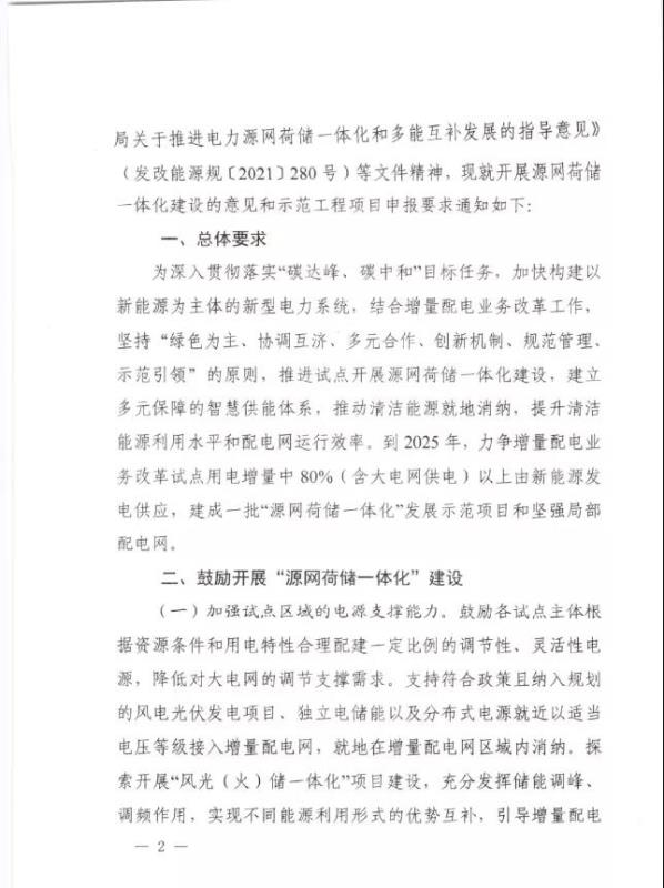 通知指出,按照“綠色為主、協(xié)調(diào)互濟、多元合作、創(chuàng)新機制、規(guī)范管理、示范引領(lǐng)”的原則,到2025年,力爭增量配電業(yè)務(wù)改革試點用電增量中80%(含大電網(wǎng)供電)以上由新能源發(fā)電供應(yīng),建成一批“源網(wǎng)荷儲一體化”發(fā)展示范項目。