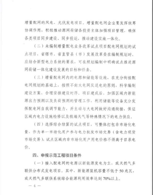 鼓勵各試點主體根據(jù)資源條件和用電特性合理配建一定比例的調(diào)節(jié)性、靈活性電源,支持符合政策且納入規(guī)劃的風(fēng)電光伏發(fā)電項目、獨立電儲能以及分布式電源就近以適當電壓接入增量配電網(wǎng),就近消納。