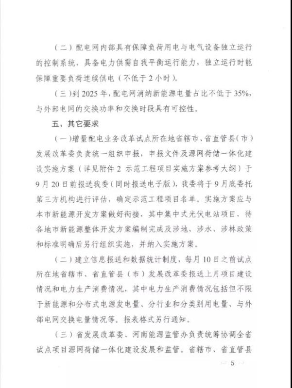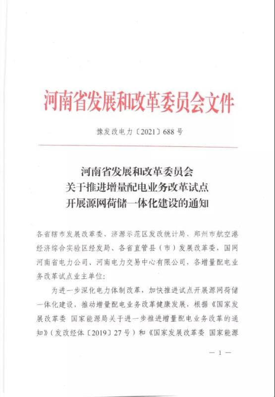 8月19日,河南省發(fā)改委印發(fā)《關(guān)于推進增量配電業(yè)務(wù)改革試點開展源網(wǎng)荷儲一體化建設(shè)的通知》,就開展源網(wǎng)荷儲一體化建設(shè)和示范工程項目申報給出指導(dǎo)意見。試點項目申報截止日期為9月20日。