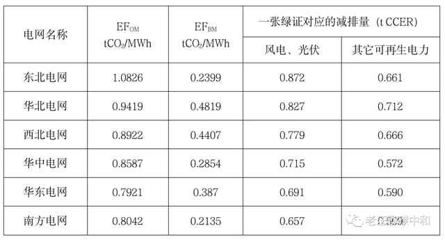 因?yàn)橹袊碾娋W(wǎng)不是統(tǒng)一的,這導(dǎo)致同1MWh的電在不同地區(qū)會(huì)產(chǎn)生不同數(shù)量的CCER,如果按照2019年的電網(wǎng)基準(zhǔn)線排放因子計(jì)算。1MWh的風(fēng)電、光伏電力在東北電網(wǎng)區(qū)域就能產(chǎn)生0.872噸的CCER,而在南方電網(wǎng)區(qū)域就只能產(chǎn)生0.657噸的CCER,兩者相差高達(dá)25%。水電等其他可再生電力因?yàn)镋FOM和EFBM的權(quán)重不一樣,產(chǎn)生的CCER又與風(fēng)電、光伏有所不同。