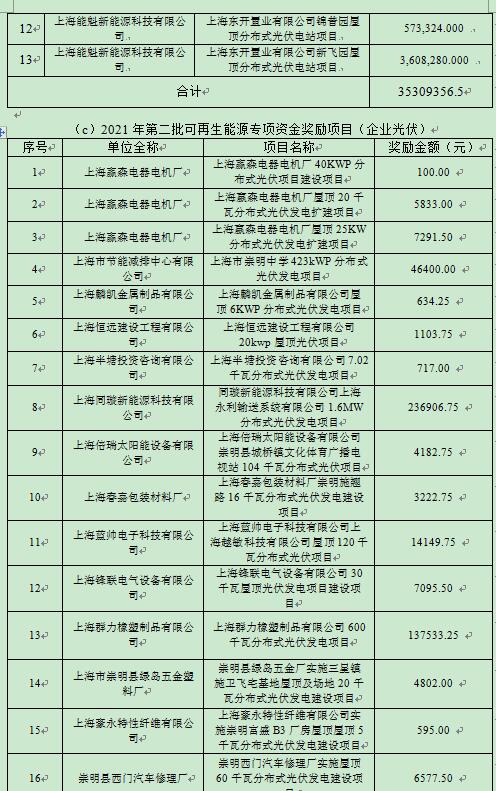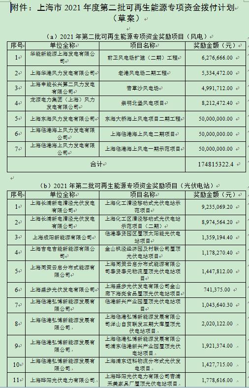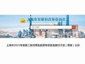為促進本市可再生能源發(fā)展,推進節(jié)能減排和能源低碳轉(zhuǎn)型,根據(jù)《上海市可再生能源和新能源發(fā)展專項資金扶持辦法》(滬發(fā)改能源〔2016〕136號)、《上海市可再生能源和新能源發(fā)展專項資金扶持辦法(2020版)》(滬發(fā)改規(guī)范〔2020〕7號)、《關(guān)于做好2021年可再生能源和新能源發(fā)展專項資金扶持項目申報和獎勵資金申請工作的通知》(滬發(fā)改能源〔2021〕18號),上海市發(fā)展改革委組織開展了2021年度第二批可再生能源專項資金扶持項目撥付資金的核實確認工作。