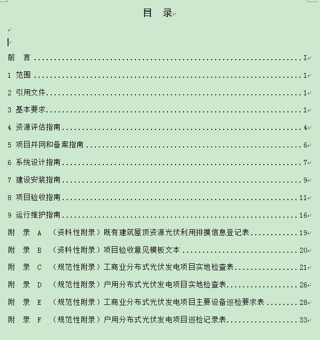 本指南規(guī)定了屋頂分布式光伏整縣(市、區(qū))推進(jìn)應(yīng)用實施相關(guān)的術(shù)語和定義、基本要求,從消納要求、資源排摸評估、項目備案與并網(wǎng)申請、系統(tǒng)設(shè)計、建設(shè)安裝、工程驗收、運行維護(hù)等方面提出全過程實施指南。