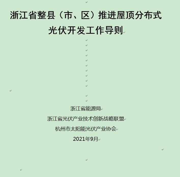 浙江省整縣(市、區(qū))推進(jìn)屋頂分布式光伏開發(fā)工作導(dǎo)則
