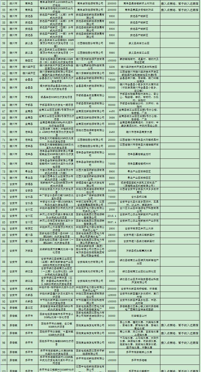近日,江西省能源局公布2021年第二批省級(jí)光伏發(fā)電規(guī)劃近期項(xiàng)目庫(kù)結(jié)果。并就有關(guān)事項(xiàng)通知如下:一、調(diào)整充實(shí)近期庫(kù)。結(jié)合各有關(guān)單位意見,原則同意符合要求的本次申報(bào)近期庫(kù)項(xiàng)目(共232個(gè)、裝機(jī)容量1454.79萬(wàn)千瓦)予以納入近期庫(kù),同時(shí)根據(jù)各設(shè)區(qū)市申請(qǐng),對(duì)原近期庫(kù)項(xiàng)目調(diào)整移出4個(gè)、裝機(jī)容量1.15萬(wàn)千瓦,調(diào)整