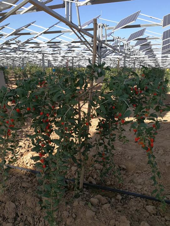 晶科能源積極響應(yīng)西北荒漠化改造,為寧夏寶豐新能源農(nóng)光互補(bǔ)項目提供90MW高效組件,企業(yè)發(fā)揮前瞻性全局思維,通過加大板下空間的方式,在項目區(qū)域因地制宜種植寧夏枸杞,改善當(dāng)?shù)厣鷳B(tài)環(huán)境。