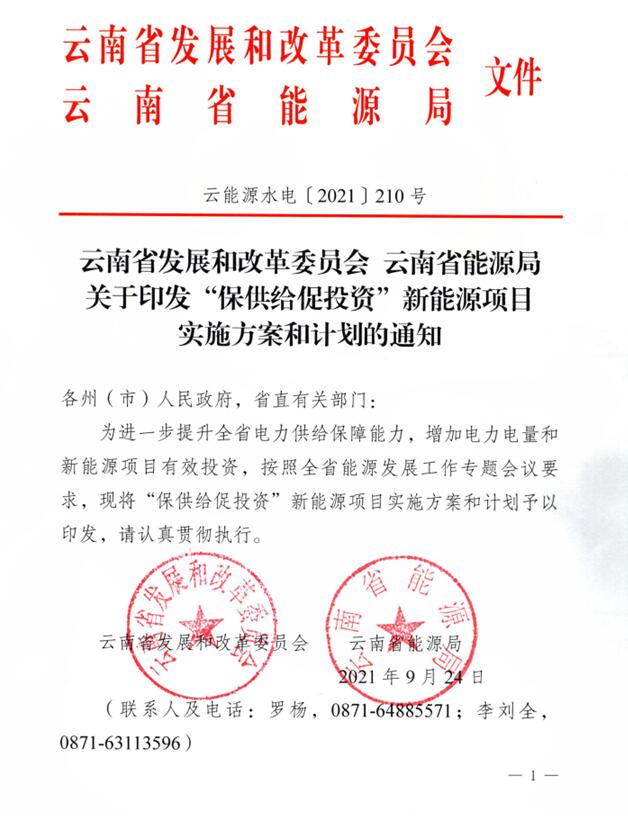從云南省能源局獲悉:近日,云南省發(fā)展和改革委員會(huì)、云南省能源局聯(lián)合發(fā)布《“保供給促投資”新能源項(xiàng)目實(shí)施計(jì)劃》,組織實(shí)施445萬(wàn)千瓦“保供給促投資”新能源項(xiàng)目,增加電力電量和新能源項(xiàng)目有效投資,進(jìn)一步提升全省電力供給保障能力。