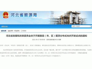 河北省發(fā)改委27日發(fā)布開展整縣(市、區(qū))屋頂分布式光伏開發(fā)試點的通知,明確了完成編制試點建設方案、光伏發(fā)電項目備案、光伏發(fā)電項目建設和試點評估驗收的時間和要求。