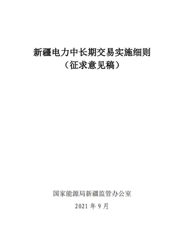 9月29日,新疆監(jiān)管辦印發(fā)關(guān)于征求《新疆電力中長期交易實施細(xì)則 (征求意見稿)》意見的通知,根據(jù)國家發(fā)展改革委 國家能源局要求,新疆監(jiān)管辦為進(jìn)一步完善新疆電力中長期交易機(jī)制,結(jié)合新疆實際,按規(guī)定程序,牽頭組織開展了《新疆電力中長期交易實施細(xì)則(試行)》修訂工作,形成了《新疆電力中長期交易實施細(xì)則(征求意見稿)》。現(xiàn)印發(fā)征求意見,請結(jié)合實際情況研提意見,并于2021年10月30日前反饋我辦,逾期未反饋視為無意見。