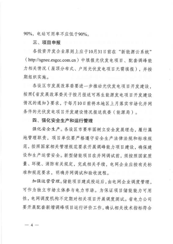 9月29日,江蘇發(fā)改委印發(fā)《省發(fā)改委關于我省2021年光伏發(fā)電項目市場化并網(wǎng)有關事項的通知》。2021年落實市場化并網(wǎng)條件的光伏發(fā)電項目:原則上應在2023年6月底前建成并網(wǎng)。配套新增調峰能力項目原則上應為2021年1月1日以后投產(chǎn)的項目,應與光伏發(fā)電項目同步建成、同步并網(wǎng),可在光伏發(fā)電項目所在地建設,也可以異地建設,但長江以北市場化并網(wǎng)的光伏發(fā)電項目所建設或購買的調峰能力原則上須在長江以北區(qū)域建成。