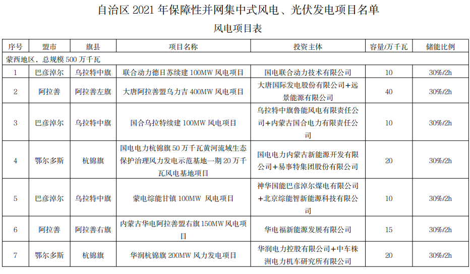 10月8日,內蒙古自治區(qū)能源局發(fā)布關于自治區(qū)2021年保障性并網(wǎng)集中式風電、光伏發(fā)電項目優(yōu)選結果的公示。