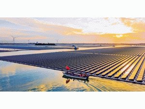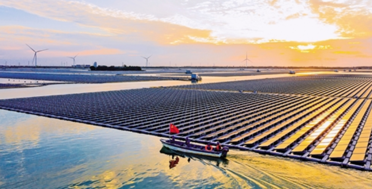 10月19日,國家電網(wǎng)彩虹服務(wù)隊(duì)隊(duì)員在山東德州丁莊華能光伏電站開展日常維護(hù),排查涉電安全隱患,確保迎峰度冬用電穩(wěn)定。丁莊華能光伏電站是全球單體最大水面漂浮式光伏電站,一期100兆瓦項(xiàng)目近期并網(wǎng)發(fā)電。該項(xiàng)目全部建成后,每年可提供清潔能源4.2億千瓦時(shí)。