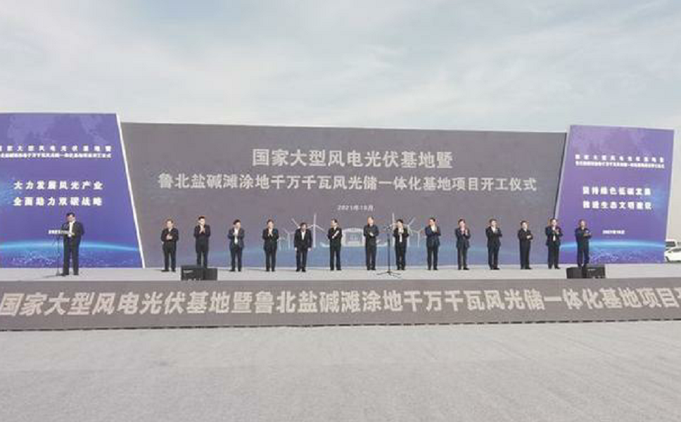 10月28日,國(guó)家大型風(fēng)電光伏基地暨魯北鹽堿灘涂地千萬(wàn)千瓦風(fēng)光儲(chǔ)一體化基地首批總裝機(jī)200萬(wàn)千瓦集中式光伏發(fā)電項(xiàng)目開(kāi)工儀式在濰坊舉行。