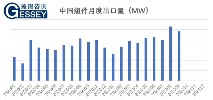 根據(jù)蓋錫出口數(shù)據(jù)庫(kù),2021年9月中國(guó)光伏組件出口相比去年9月同比上升18.3%,1-9月出口量同比上升23.2%,整體來(lái)看,今年比去年的出口情況有較大幅度增長(zhǎng)。