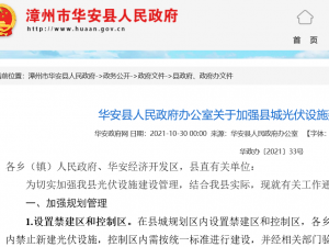 華安縣人民政府辦公室關(guān)于加強縣城光伏設(shè)施建設(shè)規(guī)范管理的通知(華政辦〔2021〕33號)