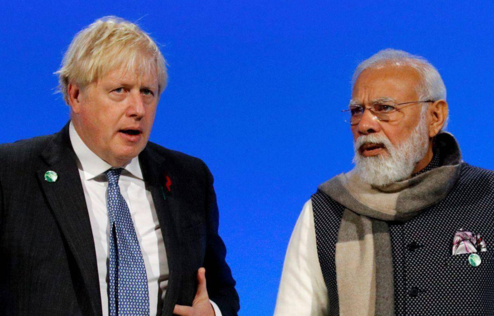 ▲英國(guó)首相約翰遜和印度總理莫迪出席大會(huì)