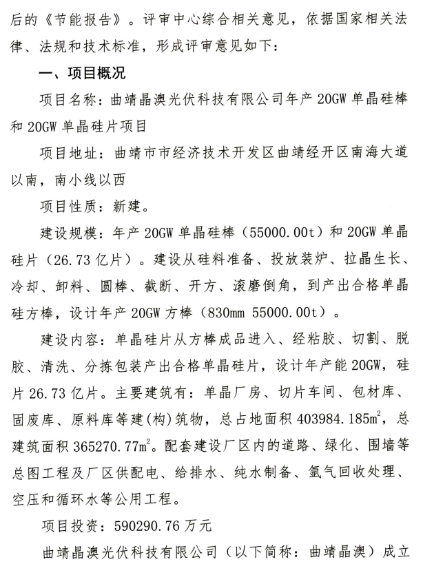 從云南發(fā)改委官網(wǎng)獲悉:11月2日,云南省發(fā)展和改革委員會(huì)發(fā)布通告,原則同意曲靖陽(yáng)光能源硅材料有限公司年產(chǎn)20GW單晶硅棒及10GW硅片項(xiàng)目節(jié)能報(bào)告、曲靖晶澳光伏科技有限公司年產(chǎn)20GW單晶硅棒和20GW單晶硅片項(xiàng)目節(jié)能報(bào)告的審查意見。
