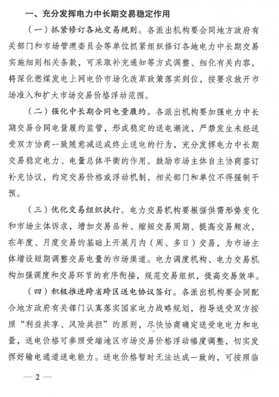 《通知》要求,充分發(fā)揮電力中長(zhǎng)期交易穩(wěn)定作用,抓緊修訂各地交易規(guī)則,強(qiáng)化中長(zhǎng)期合同電量履約,優(yōu)化交易組織執(zhí)行,積極推進(jìn)跨省跨區(qū)送電協(xié)議簽訂,增強(qiáng)合同調(diào)整靈活性。