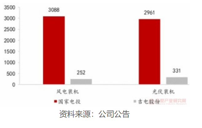吉電股份公司作為國家電投的子公司,截至2020年末,公司總裝機容量913萬千瓦,其中,火電330萬千瓦、風電252萬千瓦、光伏331萬千瓦,新能源裝機占比63.85%。2020年,公司風電新增裝機82GW,光伏新增裝機161GW。
