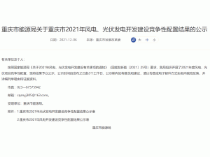 從重慶市發(fā)展改革委獲悉:12月6日重慶市能源局發(fā)布2021年風(fēng)電、光伏發(fā)電開(kāi)發(fā)建設(shè)競(jìng)爭(zhēng)性配置結(jié)果公示,光伏項(xiàng)目20個(gè),總規(guī)模1.4GW;風(fēng)電項(xiàng)目8個(gè),總規(guī)模472.4MW。