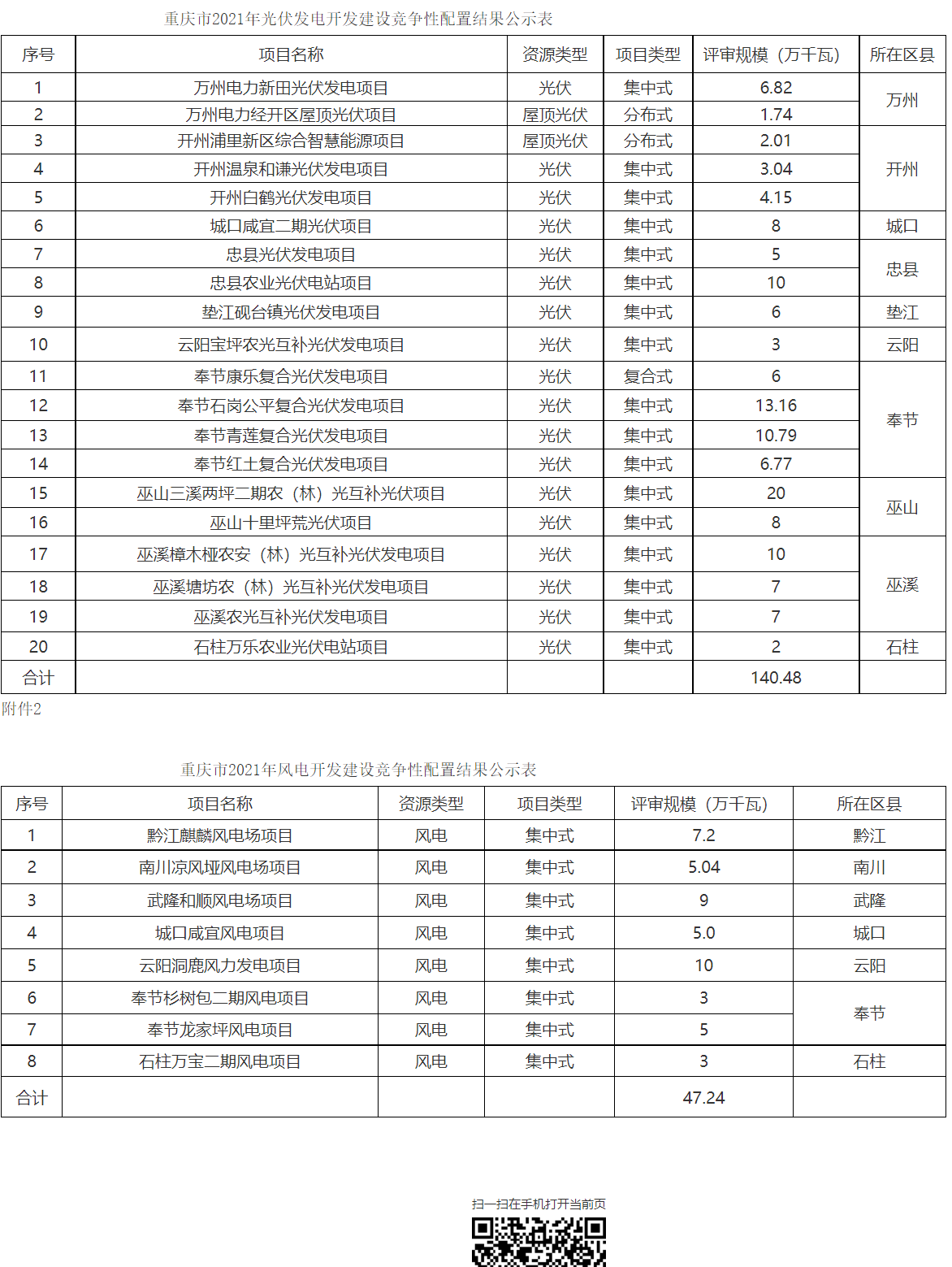 從重慶市發(fā)展改革委獲悉:12月6日重慶市能源局發(fā)布2021年風(fēng)電、光伏發(fā)電開(kāi)發(fā)建設(shè)競(jìng)爭(zhēng)性配置結(jié)果公示,光伏項(xiàng)目20個(gè),總規(guī)模1.4GW;風(fēng)電項(xiàng)目8個(gè),總規(guī)模472.4MW。具體如下: