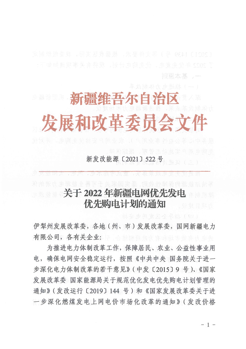 從新疆發(fā)改委獲悉,根據(jù)新疆發(fā)改委日前印發(fā)的2022年新疆電網(wǎng)優(yōu)先發(fā)電優(yōu)先購(gòu)電計(jì)劃,明年將重點(diǎn)考慮水電、風(fēng)電、太陽(yáng)能發(fā)電等清潔能源的保障性收購(gòu),引導(dǎo)新能源電力項(xiàng)目建設(shè),加大保障性風(fēng)光發(fā)電消納力度。根據(jù)計(jì)劃提出的風(fēng)電、太陽(yáng)能發(fā)電、水電、生物質(zhì)發(fā)電等明年重點(diǎn)任務(wù),太陽(yáng)能發(fā)電機(jī)組安排優(yōu)先發(fā)電56.71億千瓦時(shí)。通知全文如下: