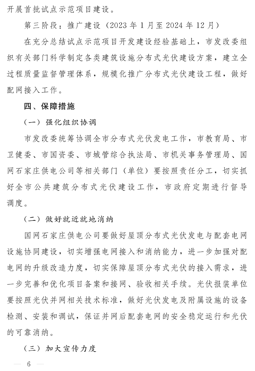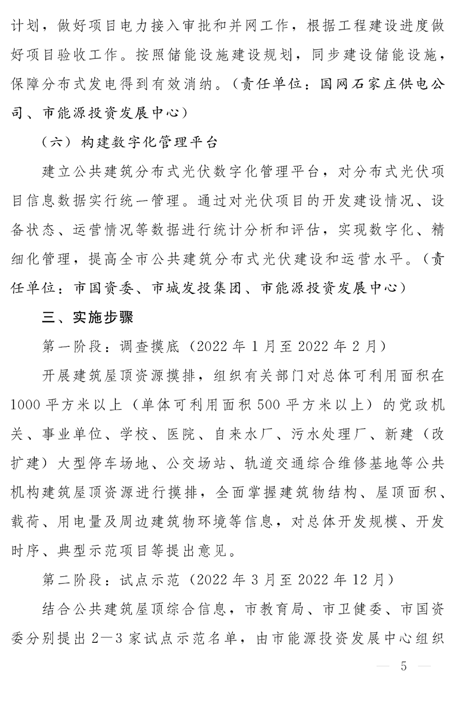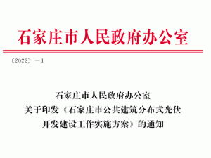 日前,河北省石家莊人民政府印發(fā)《公共建筑分布式光伏開發(fā)建設(shè)工作實(shí)施方案》,要求用2-3年的時(shí)間市區(qū)分布式光伏覆蓋率達(dá)到和超過(guò)國(guó)家試點(diǎn)市縣標(biāo)準(zhǔn),其中水廠、污水處理廠等公共基礎(chǔ)設(shè)施的安裝比例達(dá)到90%以上。重點(diǎn)在黨政機(jī)關(guān)、學(xué)校、醫(yī)院、市政基礎(chǔ)設(shè)施等公共建筑發(fā)展光伏應(yīng)用,打造“光伏+”工程,形成示范效