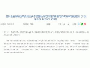 2月8日,四川省發(fā)展和改革委員會(huì)印發(fā)關(guān)于調(diào)整地方電網(wǎng)目錄銷售電價(jià)有關(guān)事項(xiàng)的通知。自本通知印發(fā)之日起,全面取消地方電網(wǎng)工商業(yè)目錄銷售電價(jià)。