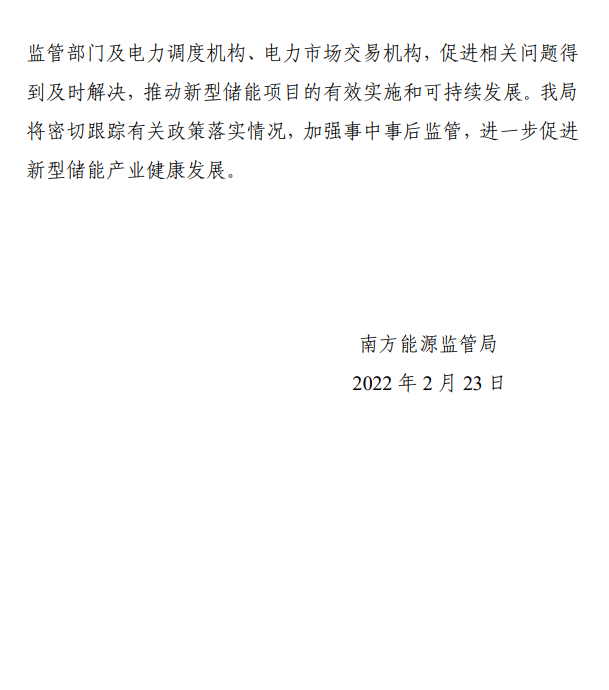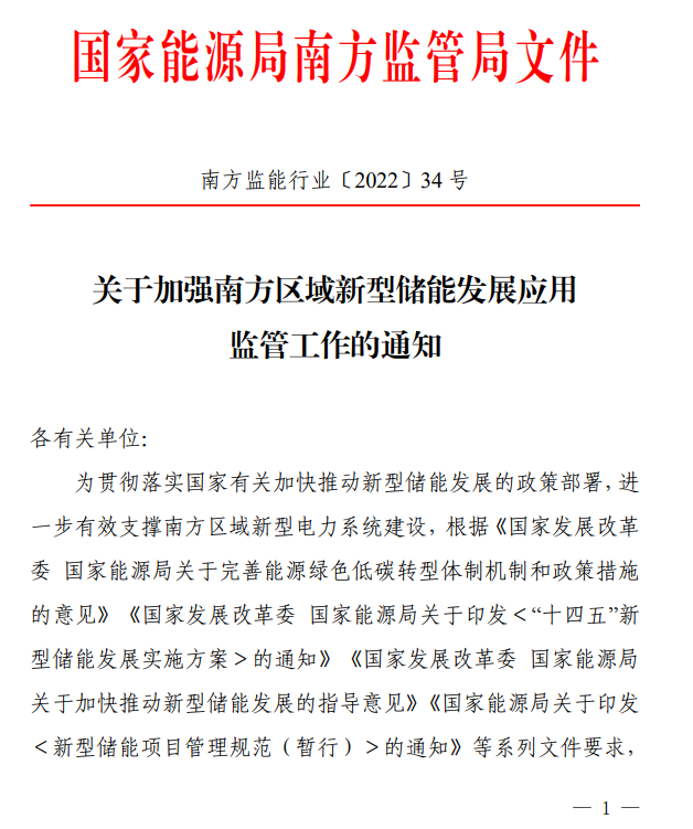 近日,南方能源監(jiān)管局根據國家發(fā)展改革委、國家能源局加快新型儲能發(fā)展應用系列政策部署要求,針對新型儲能發(fā)展規(guī)劃建設、并網調度、市場交易及運行管理等各個工作環(huán)節(jié),全面研究貫徹落實監(jiān)管措施和任務,制定印發(fā)《關于加強南方區(qū)域新型儲能發(fā)展應用監(jiān)管工作的通知》(以下簡稱《通知》)。