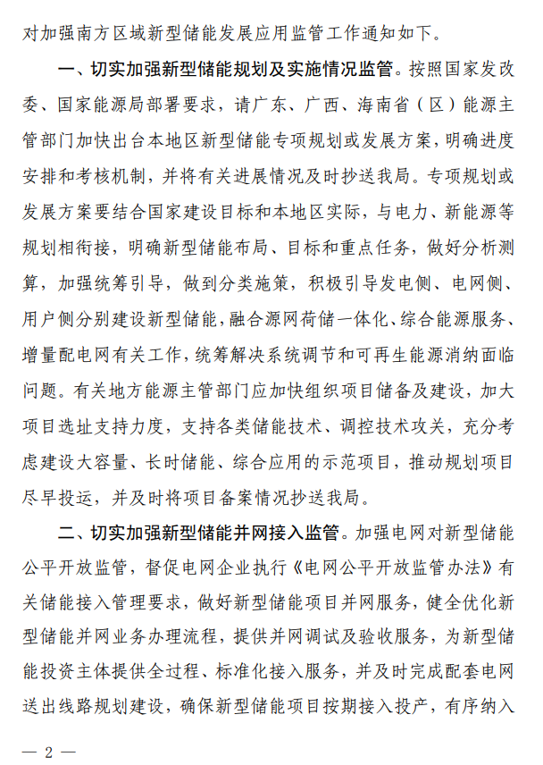 近日,南方能源監(jiān)管局根據國家發(fā)展改革委、國家能源局加快新型儲能發(fā)展應用系列政策部署要求,針對新型儲能發(fā)展規(guī)劃建設、并網調度、市場交易及運行管理等各個工作環(huán)節(jié),全面研究貫徹落實監(jiān)管措施和任務,制定印發(fā)《關于加強南方區(qū)域新型儲能發(fā)展應用監(jiān)管工作的通知》(以下簡稱《通知》)!锻ㄖ方Y合南方區(qū)域實際,對新型儲能