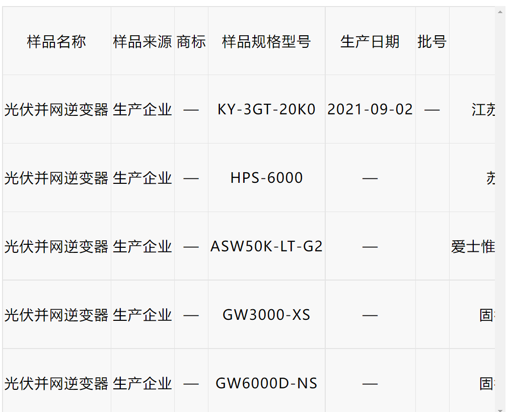 近日,江蘇省蘇州市市場監(jiān)督管理局發(fā)布2021年光伏逆變器產(chǎn)品質(zhì)量市級監(jiān)督抽查情況公告(第94期)。