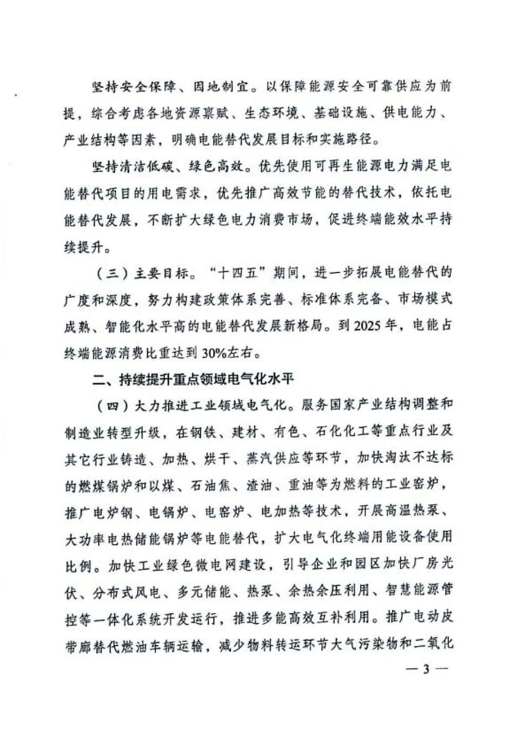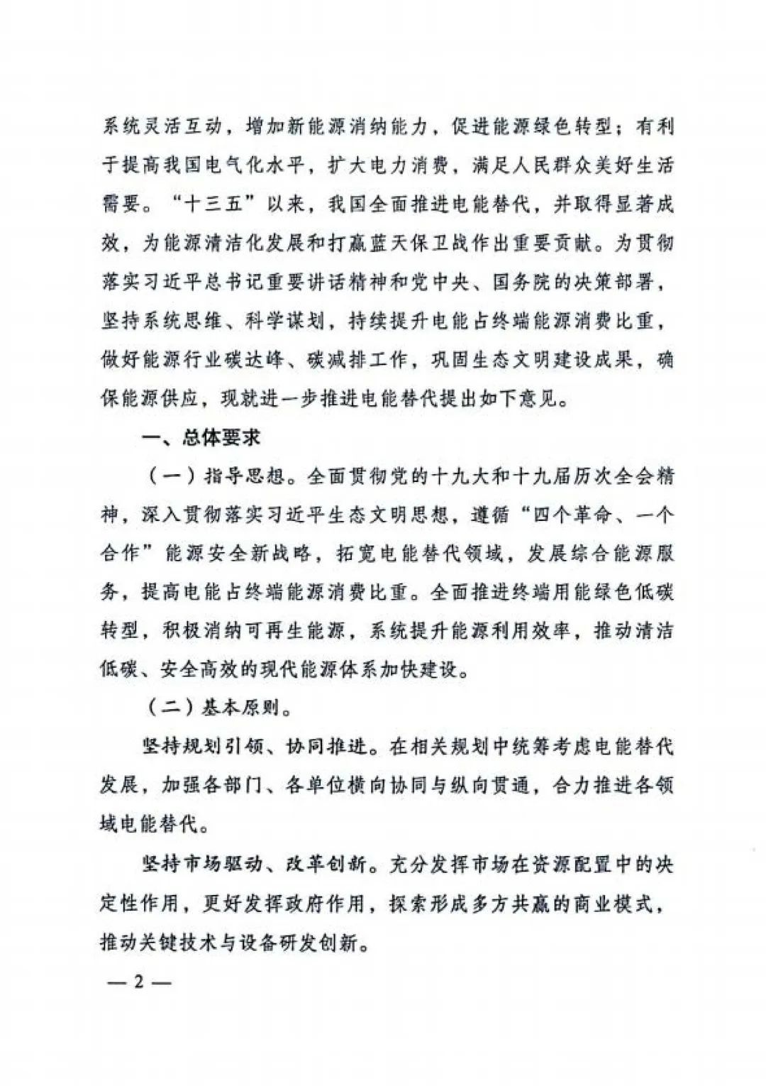 在指導(dǎo)思想內(nèi)容中,新版《指導(dǎo)意見》明確提出了“全面推進(jìn)終端用能綠色低碳轉(zhuǎn)型,積極消納可再生能源,系統(tǒng)提升能源利用效率……”。相比于舊版的“因地制宜,分步實施,逐步擴(kuò)大電能替代范圍”,新版對于終端用能的綠色低碳轉(zhuǎn)型更加明確,并加快了腳步。