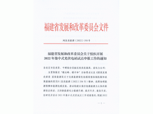 3月29日,福建省發(fā)改委啟動(dòng)了2022年集中式光伏電站試點(diǎn)申報(bào)工作。