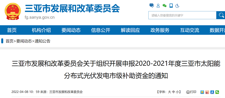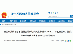 日前,三亞市發(fā)展和改革委員會發(fā)布關(guān)于組織開展申報(bào)2020-2021年度三亞市太陽能分布式光伏發(fā)電市級補(bǔ)助資金的通知,2020年12月31日前,在三亞市行政轄區(qū)內(nèi)由各類投資主體(含個人及光伏扶貧項(xiàng)目)利用有條件的建筑物屋頂或附屬場所開發(fā)建設(shè)的分布式光伏發(fā)電項(xiàng)目可以參加申報(bào)。已享受國家金太陽或光電建筑一體化財(cái)政補(bǔ)助資金支持的光伏發(fā)電應(yīng)用項(xiàng)目不