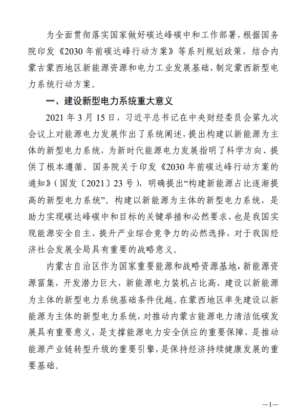 蒙西新型電力系統(tǒng)建設(shè)行動(dòng)方案(1.0版)全文如下: