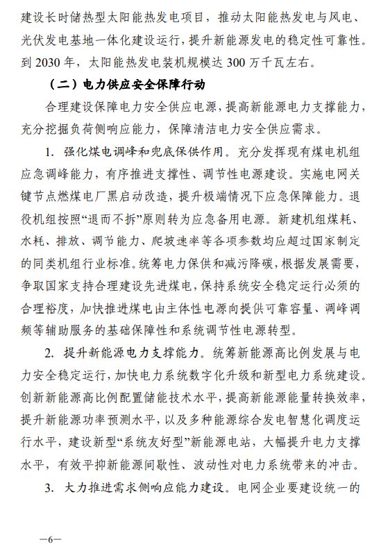 對(duì)此,《方案》提出了九項(xiàng)重點(diǎn)任務(wù)行動(dòng),分別是新能源建設(shè)躍升、電力供應(yīng)安全保障、堅(jiān)強(qiáng)智能靈活電網(wǎng)建設(shè)、電力綠色消費(fèi)升級(jí)、系統(tǒng)調(diào)節(jié)能力提升、煤電機(jī)組改造升級(jí)行動(dòng)、新型儲(chǔ)能推廣應(yīng)用、蒙西電力市場(chǎng)建設(shè)、技術(shù)創(chuàng)新應(yīng)用示范。