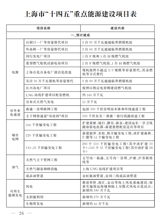 附件:上海市“十四五”重點(diǎn)能源建設(shè)項(xiàng)目表