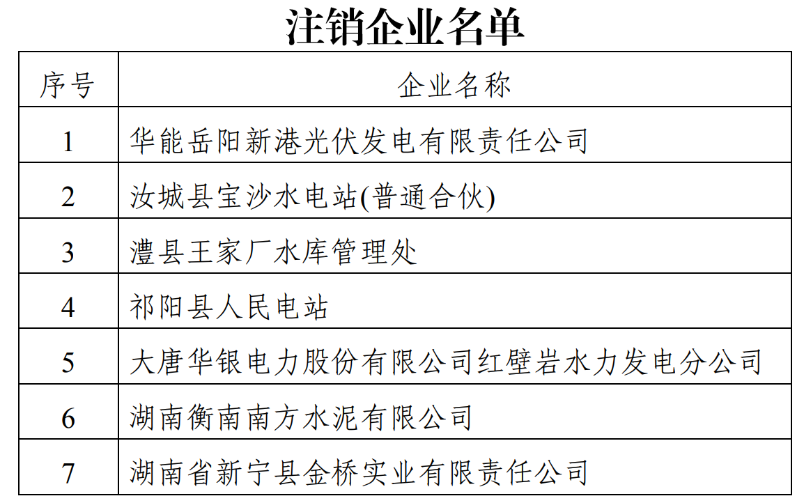 近日,湖南能源監(jiān)管辦公布關(guān)于注銷華能岳陽新港光伏發(fā)電有限責(zé)任公司等7家企業(yè)電力業(yè)務(wù)資質(zhì)許可(發(fā)電類)的決定,華能岳陽新港光伏發(fā)電有限責(zé)任公司等 7 家企業(yè)工商登記已注銷,已不符合電力業(yè)務(wù)許可證法定條件、標(biāo)準(zhǔn),注銷公示期間未收到異議回復(fù)。