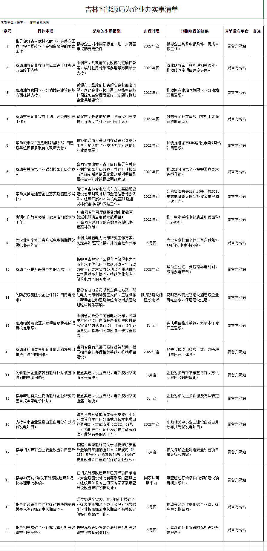 日前,吉林省能源局公布了2022年為企業(yè)辦實(shí)事清單。