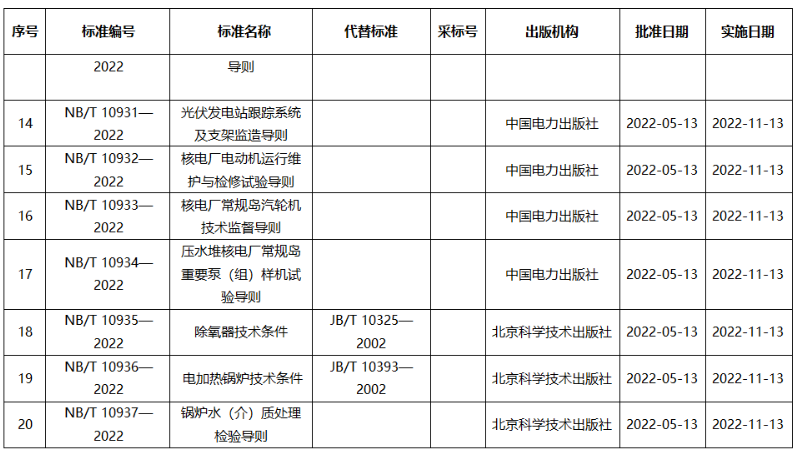 7日從國家能源局官網(wǎng)獲悉:國家能源局發(fā)布2022年第4號公告,根據(jù)《中華人民共和國標(biāo)準(zhǔn)化法》《能源標(biāo)準(zhǔn)化管理辦法》,批準(zhǔn)《智能風(fēng)電場技術(shù)導(dǎo)則》等209項(xiàng)能源行業(yè)標(biāo)準(zhǔn)(附件1)、《Specification for Preparation of Feasibility Study Report for Photovoltaic Power Projects》等23項(xiàng)能源行業(yè)標(biāo)準(zhǔn)外文版(附件2)、《水電工程天然建筑材料勘察規(guī)程》等2項(xiàng)能源行業(yè)標(biāo)準(zhǔn)修改通知單(附件3),現(xiàn)予以發(fā)布。