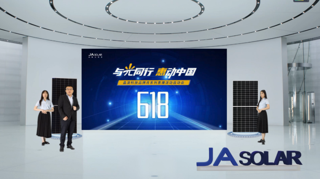 晶澳科技品牌月系列直播活動啟動會采用了虛擬+現(xiàn)實的“