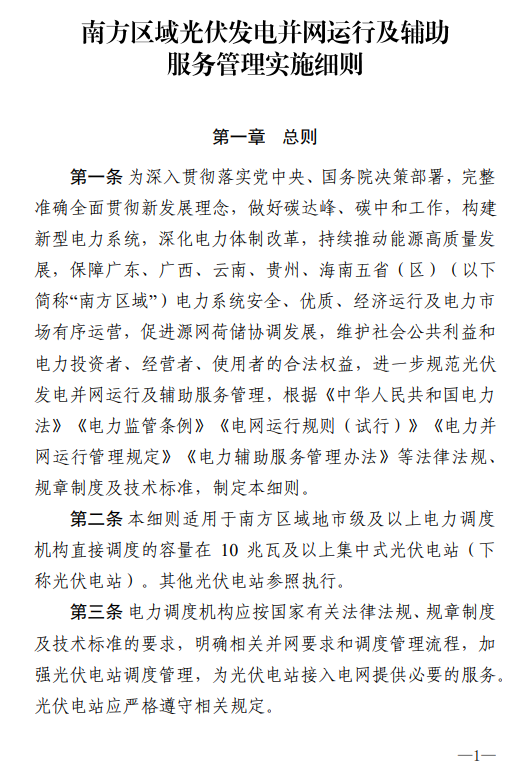 6月13日,國家能源局南方監(jiān)管局印發(fā)《南方區(qū)域電力并網(wǎng)運(yùn)行管理實(shí)施細(xì)則》《南方區(qū)域電力輔助服務(wù)管理實(shí)施細(xì)則》及及相關(guān)專項(xiàng)實(shí)施細(xì)則。其中,包括《南方區(qū)域光伏發(fā)電并網(wǎng)運(yùn)行及輔助服務(wù)管理實(shí)施細(xì)則》。細(xì)則》明確,《南方區(qū)域光伏發(fā)電并網(wǎng)運(yùn)行及輔助服務(wù)管理實(shí)施細(xì)則》適用于南方區(qū)域地市級及以上電力調(diào)度機(jī)構(gòu)直接調(diào)度的容量