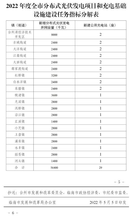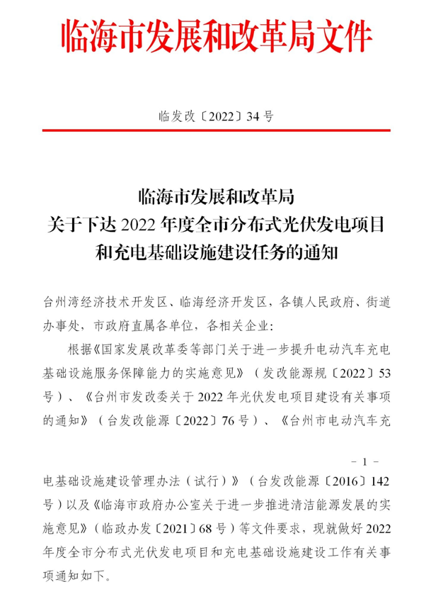 據(jù)臨海市發(fā)改局官網(wǎng):近日,浙江臨海市發(fā)展和改革局印發(fā)關(guān)于下達(dá)2022年度全市分布式光伏發(fā)電項(xiàng)目和充電基礎(chǔ)設(shè)施建設(shè)任務(wù)的通知,2022年,全市新增分布式光伏發(fā)電項(xiàng)目并網(wǎng)容量56400千瓦。鼓勵(lì)新建工業(yè)廠房的投資項(xiàng)目配備一定比例的分布式光伏發(fā)電系統(tǒng)。充分利用新農(nóng)村。移民小區(qū)等成片建筑和有條件的居民屋頂建設(shè)戶用分布式光伏發(fā)電系統(tǒng)。