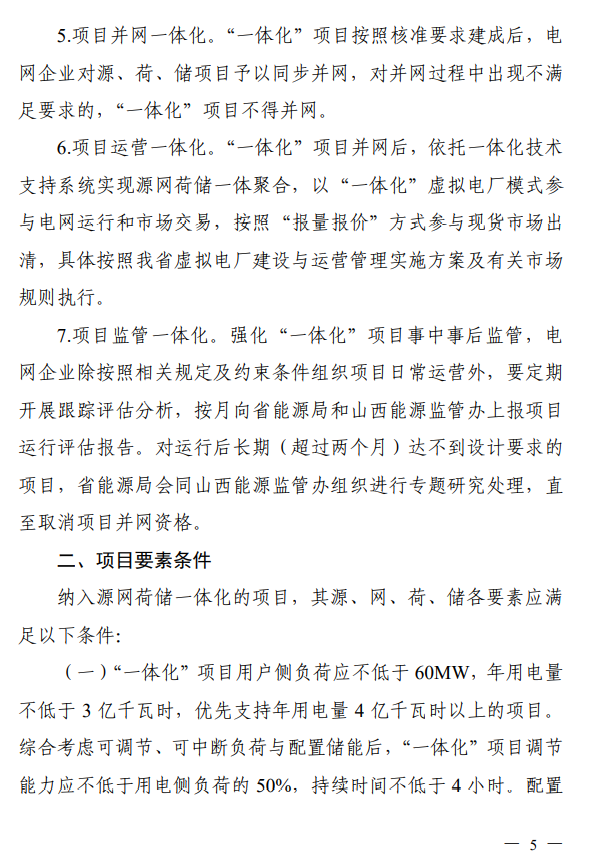 從山西省能源局獲悉,近日,山西省能源局印發(fā)《源網(wǎng)荷儲(chǔ)一體化項(xiàng)目管理辦法》,明確了“一體化”項(xiàng)目中源、網(wǎng)、荷、儲(chǔ)各要素應(yīng)滿足的關(guān)鍵指標(biāo)及要求,重點(diǎn)指導(dǎo)推進(jìn)市縣級(jí)、園區(qū)級(jí)源網(wǎng)荷儲(chǔ)一體化項(xiàng)目,嚴(yán)守“一體化”項(xiàng)目要求底線,堅(jiān)持七個(gè)方面的一體化要求,通過源荷互動(dòng)大幅提升新能源消納能力,促進(jìn)能源轉(zhuǎn)型和綠色發(fā)展。