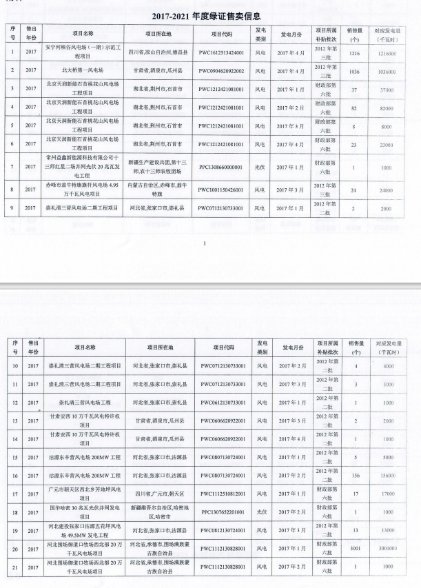 公示稱,2022年5月31日,國家電網(wǎng)有限公司收到國家可再生能源信息管理中心《關(guān)于協(xié)助做好綠證出售后補(bǔ)貼資金核減工作的函》(再生能信息函〔2022〕5號(hào)),函件中提供了國網(wǎng)經(jīng)營區(qū)2017-2021年納入國家補(bǔ)貼清單的集中式風(fēng)光電項(xiàng)目綠證售賣信息,F(xiàn)將相關(guān)信息予以公示。