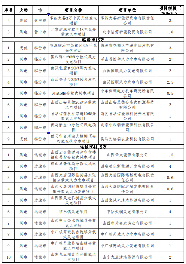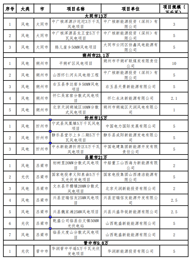 山西省擬廢止第一批風(fēng)電光伏發(fā)電項(xiàng)目清單如下: